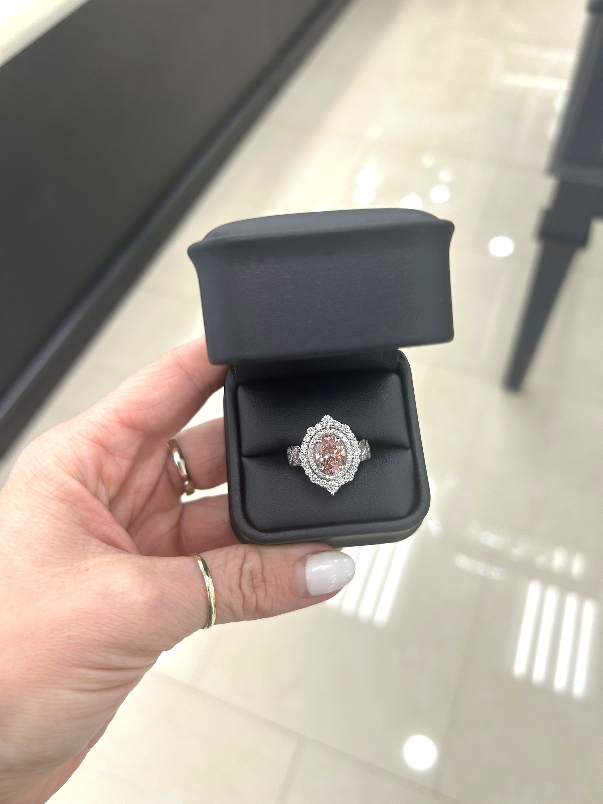 One of a KIND! 2ct baby pink oval lab diamond; approx 1ctw round diamonds! This is a custom made ring! 1 month turnaround!