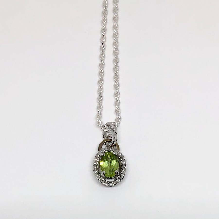 Sterling Silver Pendant Containing: 8x6 Genuine Peridot Gemstone , .05 Diamonds Includes 18” Rope Chain